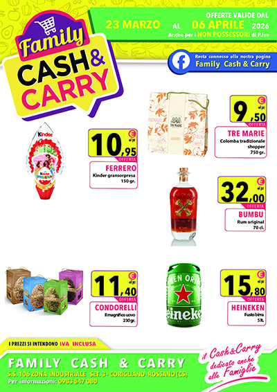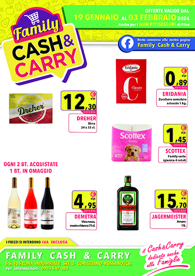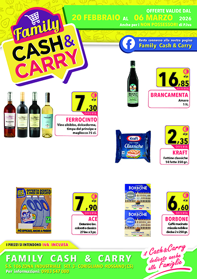 Dai un’occhiata al volantino per scoprire le offerte che Family Cash and Carry di Corigliano-Rossano a pensato per te. Ogni settimana nuove offerte e promozione da cogliere al volo. Che aspetti? Vieni a trovarci a Corigliano- Rossano!